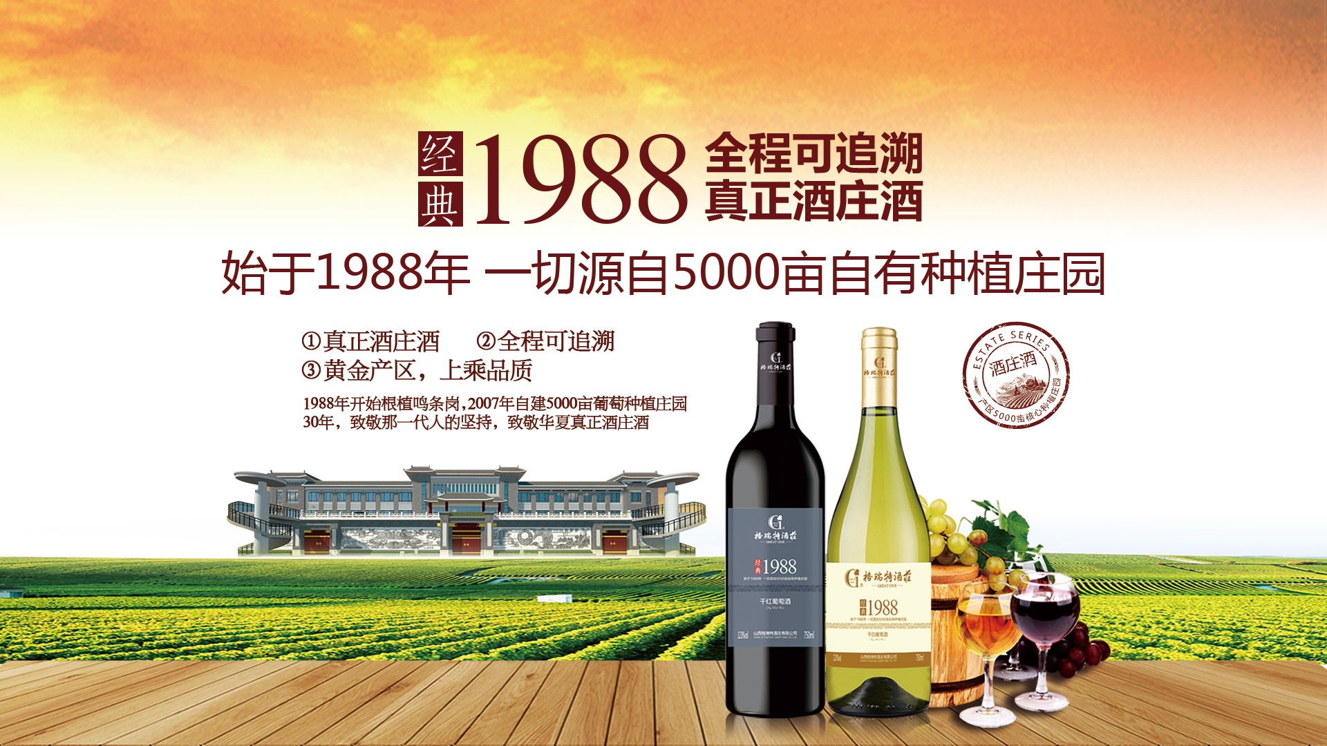 山西格瑞特酒莊有限公司成立于上世紀(jì)80年代,是一家集釀酒葡萄種植,釀酒生產(chǎn),農(nóng)業(yè)產(chǎn)業(yè)化,工業(yè)旅游化為一體的科研與生產(chǎn),創(chuàng)新與傳承并重的現(xiàn)代化綜合性葡萄酒文化股份制企業(yè)。酒莊堅(jiān)持公司+基地+農(nóng)戶的經(jīng)營模式,以一座酒莊,十億重金,百年品牌,千年傳承,萬畝產(chǎn)業(yè)集群為目標(biāo),全力打造一二三產(chǎn)業(yè)高度融合的全產(chǎn)業(yè)鏈綠色莊園,智慧工廠和旅游景點(diǎn),努力實(shí)現(xiàn)根植鳴條崗,百年格瑞特的宏偉目標(biāo)。